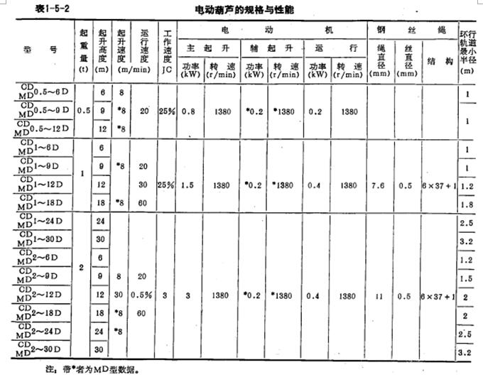 鋼繩的報廢標標準見表1-5-1.電動葫蘆的規(guī)格性能見表1-5-2